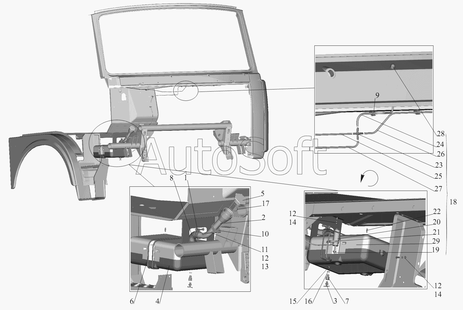 | МАЗ | МАЗ-6303A3, 6303A5 (2007) | АДЮИ.062841.002-12 | Стеклоомыватель СЭАТ-22 | Установка омывателя | |