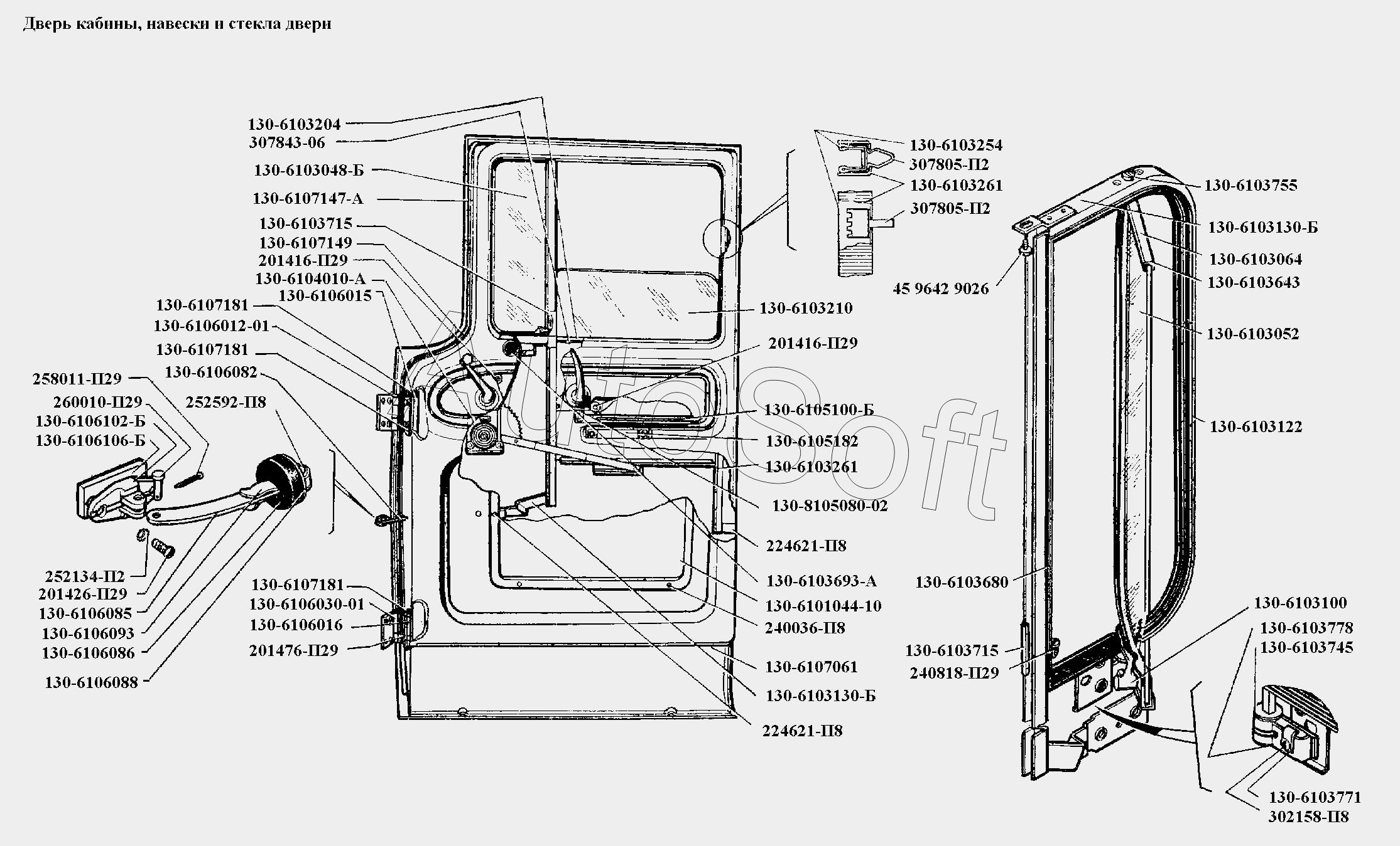 | ЗИЛ | ЗИЛ-130 (1985) | 130-6104010-А | Стеклоподъемник правый в сборе | Дверь кабины, навески и стекла двери |