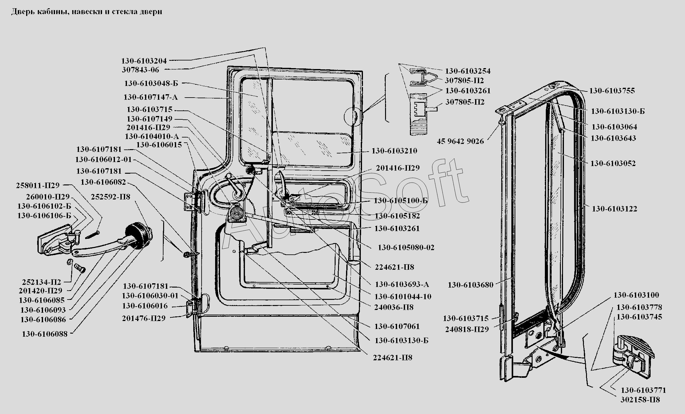| ЗИЛ | ЗИЛ-130 (1985) | 130-6104010-А | Стеклоподъемник правый в сборе | Замок, ручки и стеклоподъемник двери |