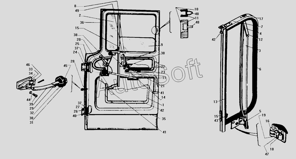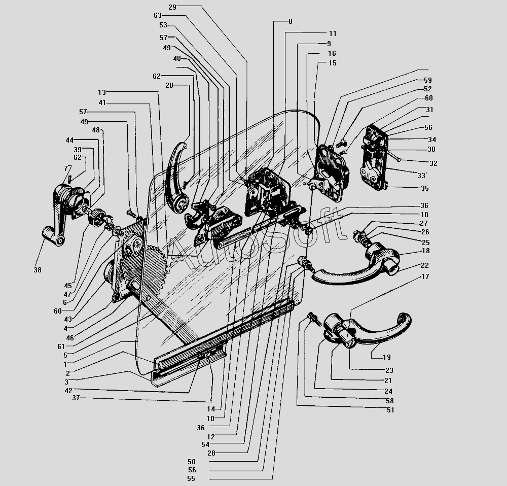| ЗИЛ | ЗИЛ-431410 (130) | 130-6104010-А | Стеклоподъемник правый в сборе | Замок, ручки и стеклоподъемник двери |