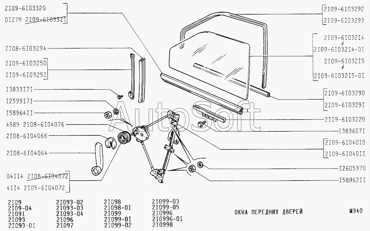 | ВАЗ | ВАЗ-2109 (2002) | 2109-6104011-10 | Стеклоподъемник левый (с электростеклоподъемниками передних дверей) | Стеклоподъемники передних дверей | |