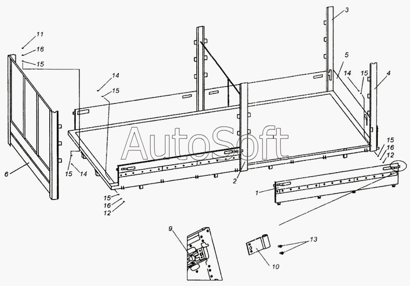 МАЗ | МАЗ-437040 (Зубренок) (2005) | 4370-8502451-010 | Стойка задняя левая | Установка бортов и стоек МАЗ-437040 | |