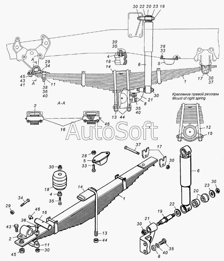 | Стремянка рессоры задней 5511-2912408 (L=420 , гайка М27) гальваника КММЗ | |