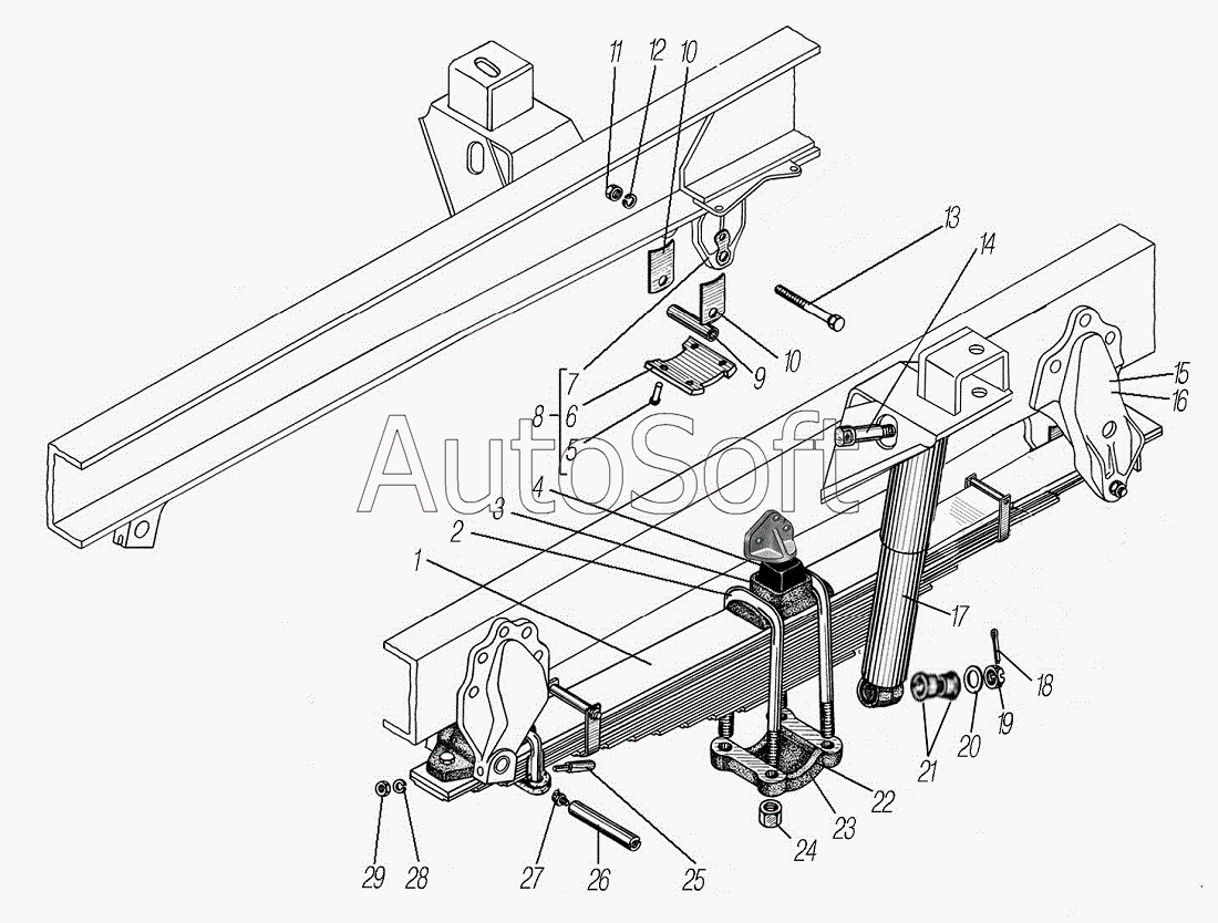 | УралАЗ | УРАЛ-4320 (1981) | 4320-2902408 | Стремянка передней рессоры | Подвеска передняя |