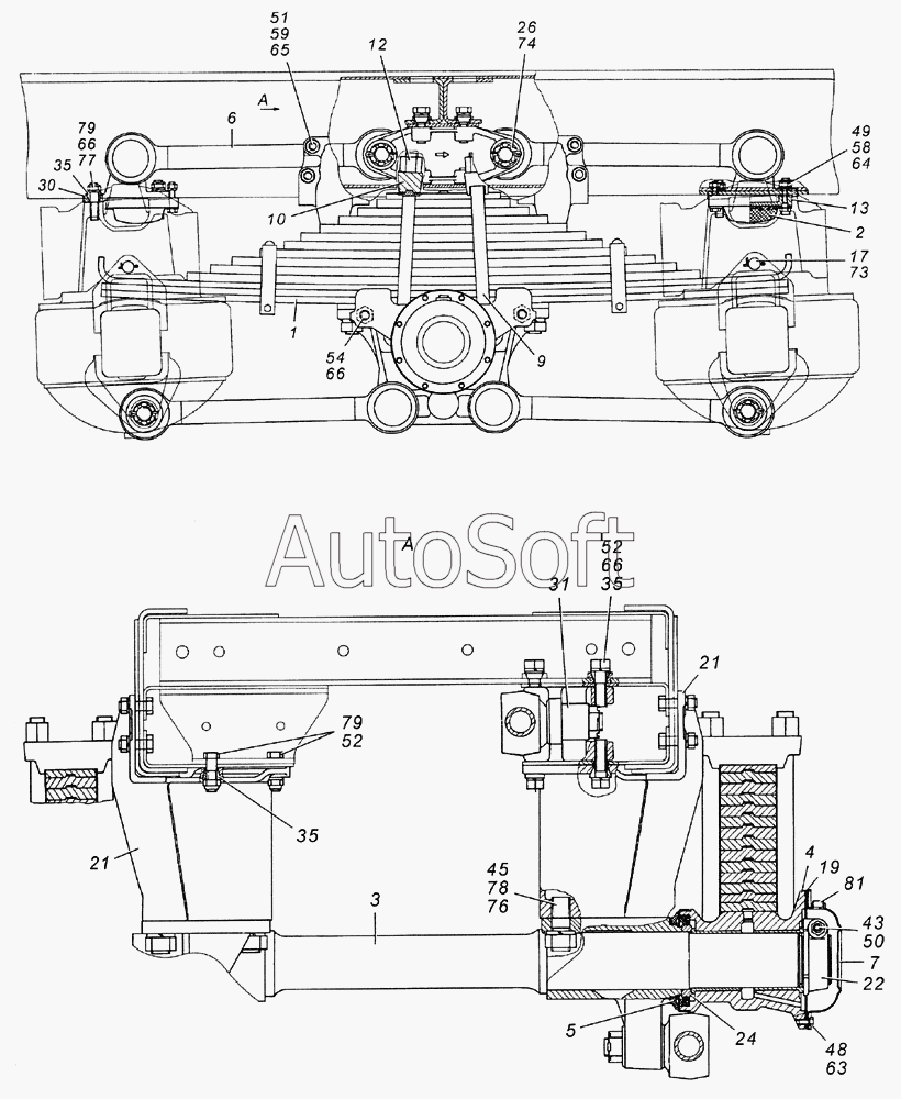 | Стремянка рессоры задней 6520-2912408 (L=455, гайка М30) | |