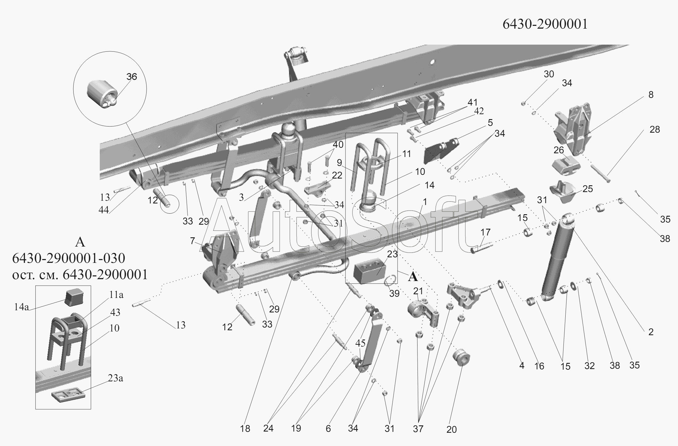 | МАЗ | МАЗ-6430A8 (5440A8, 5440A5) (2008) | 5335-2902409 | Стремянка передней рессоры задняя | Установка подвески передней |