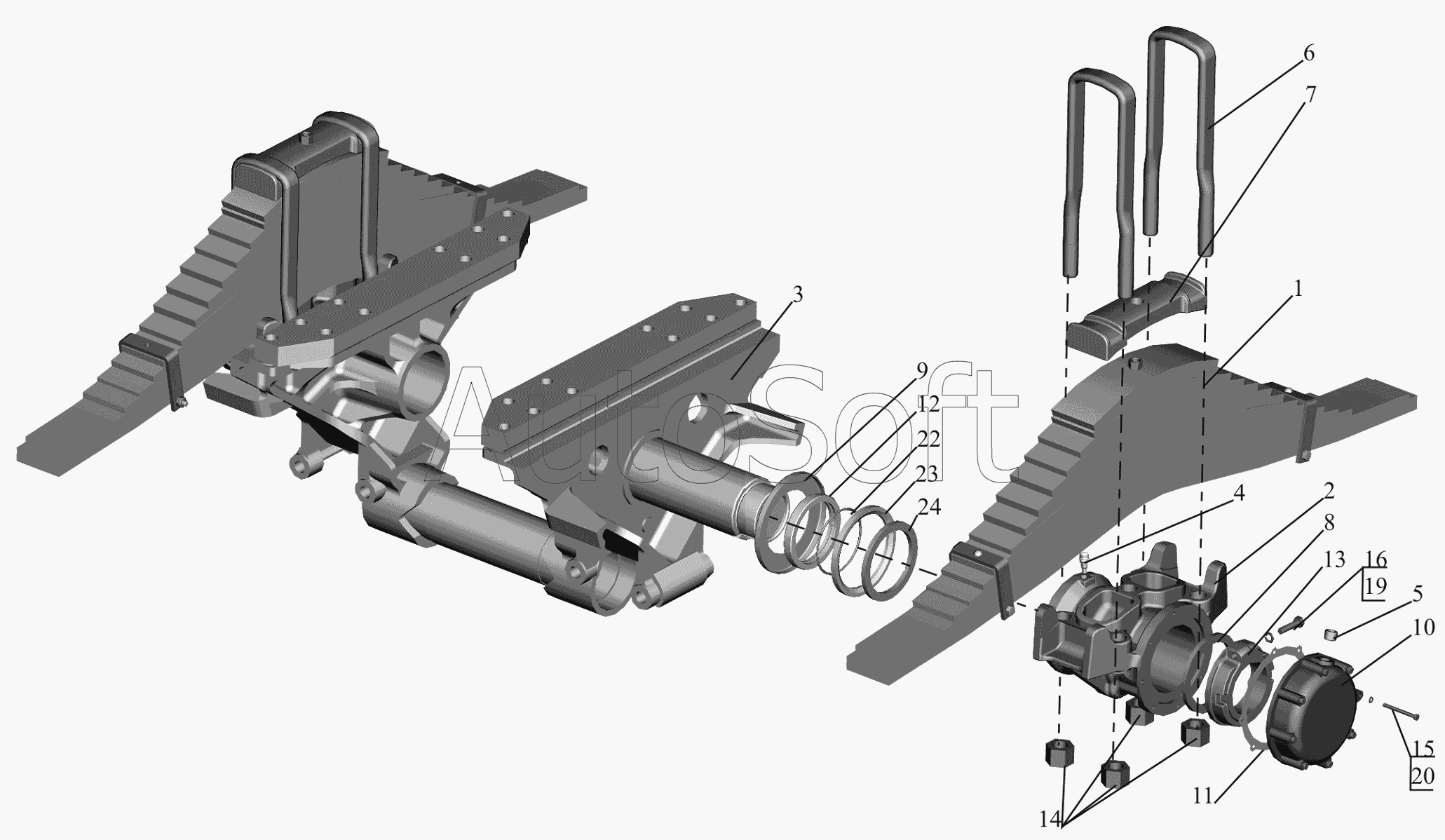Стремянка рессоры задней 9758 (L=320мм, гайка М24) МАЗ | |