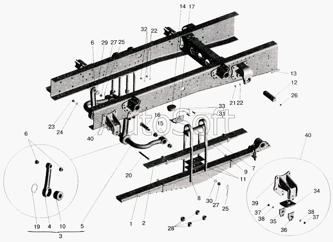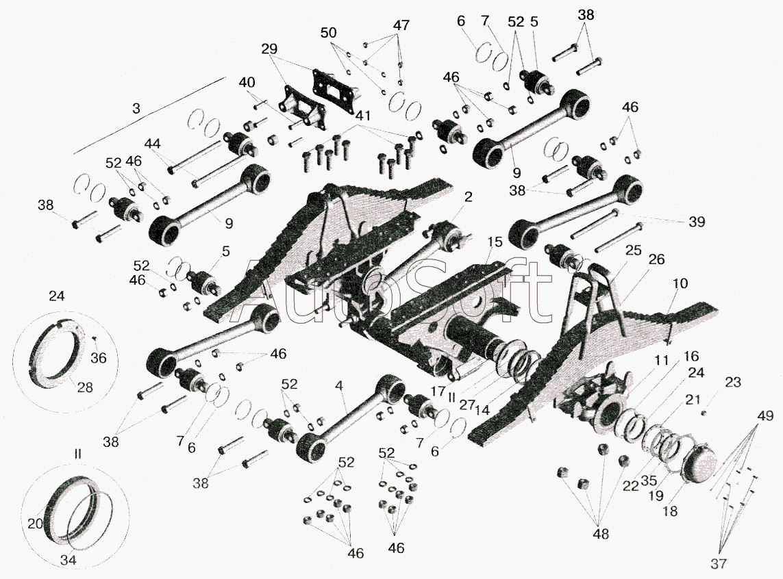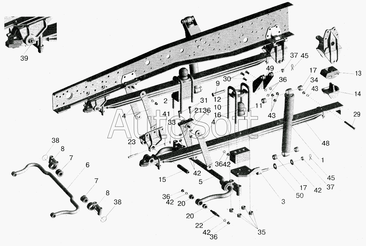 Стремянка рессоры задней 5516 (L=430мм, гайка М30) с гайками | |