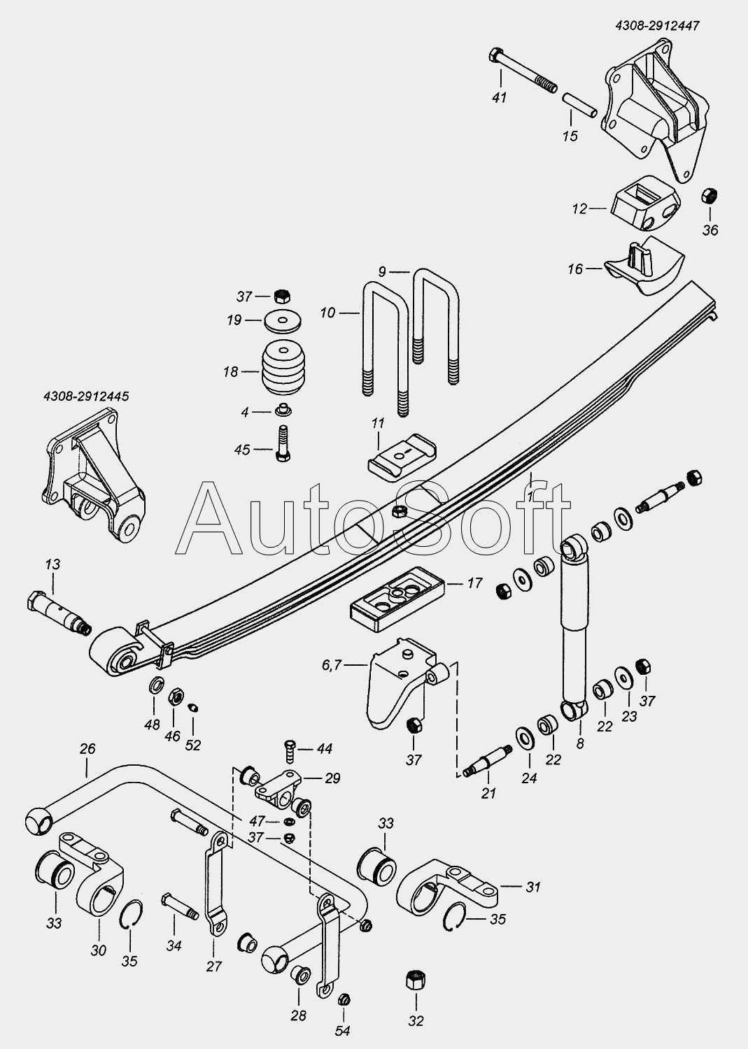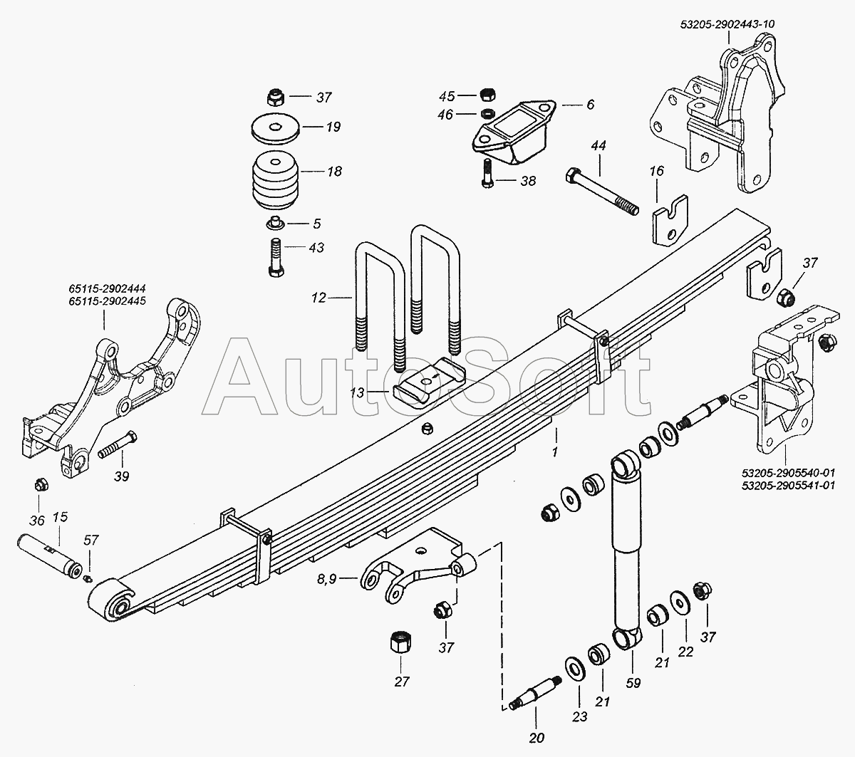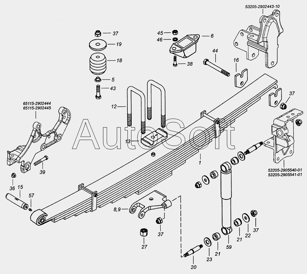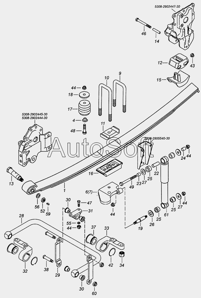 | Стремянка рессоры передней 65115-2902408 (L=260, гайка М24) гальваника КММЗ | |