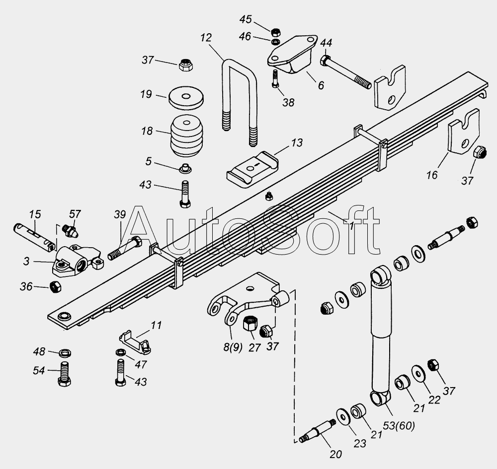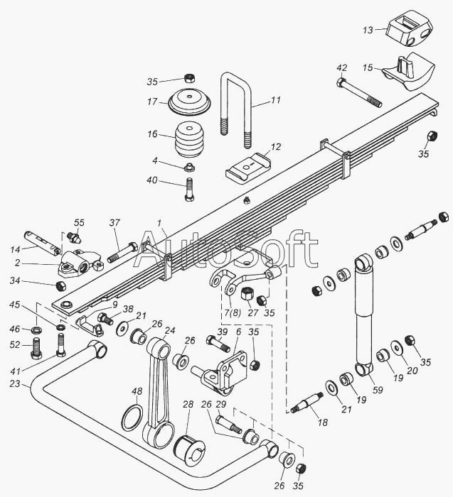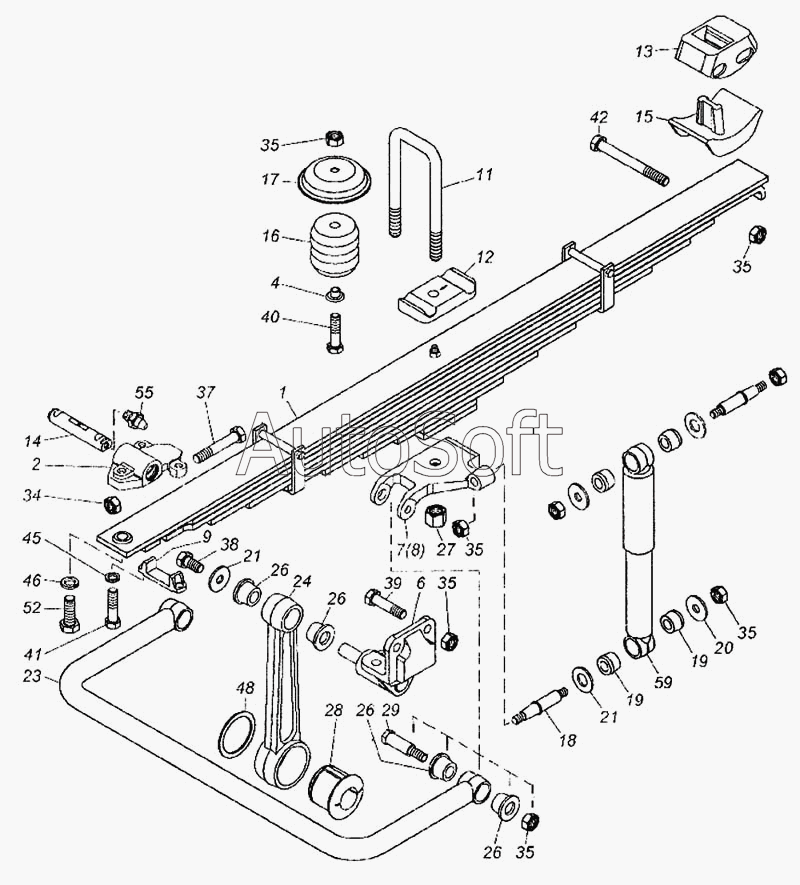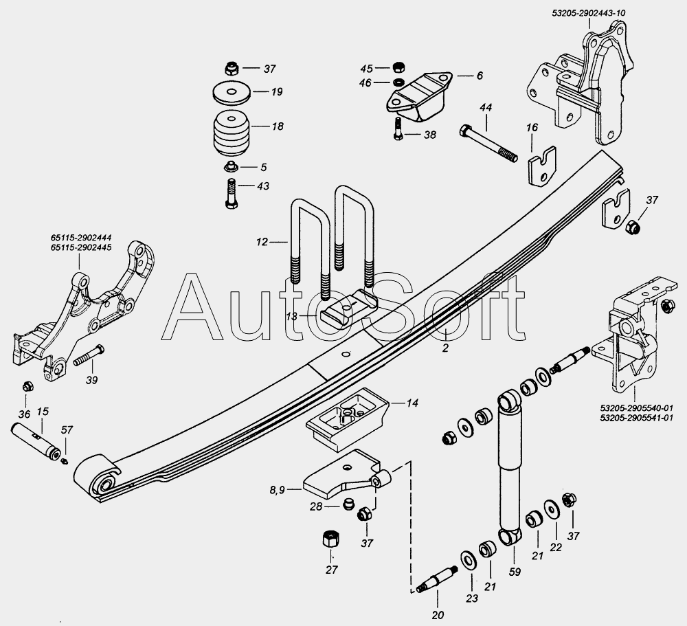 | Стремянка рессоры передней 65115-2902408 (L=260, гайка М24) гальваника КММЗ | |