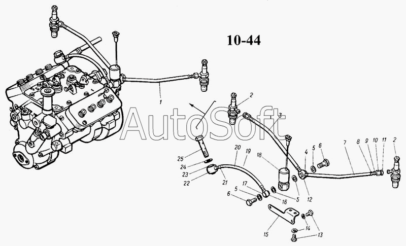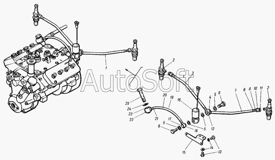 Камский автозавод | 5511 (2003) | 740.1022826 | Трубка топливная от ТНВД к магнитному клапану в сборе | Установка электромагнитного клапана | |