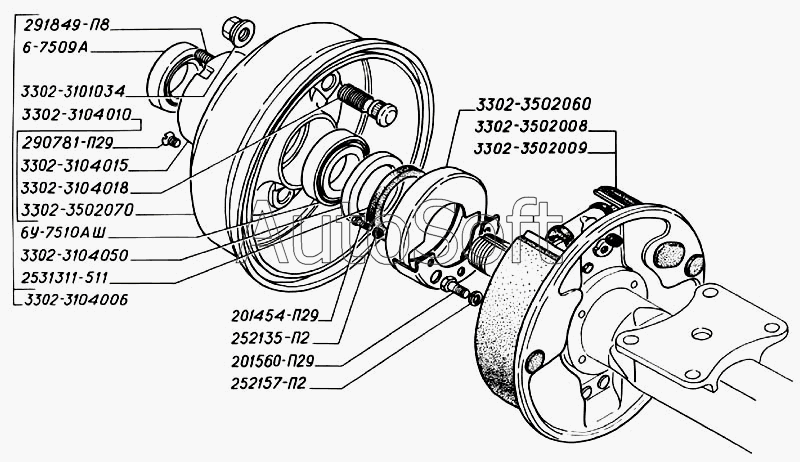 Тормоз 3302-3502009 задний левый в сборе производства ГАЗ (РФ), Код для заказа: 16558