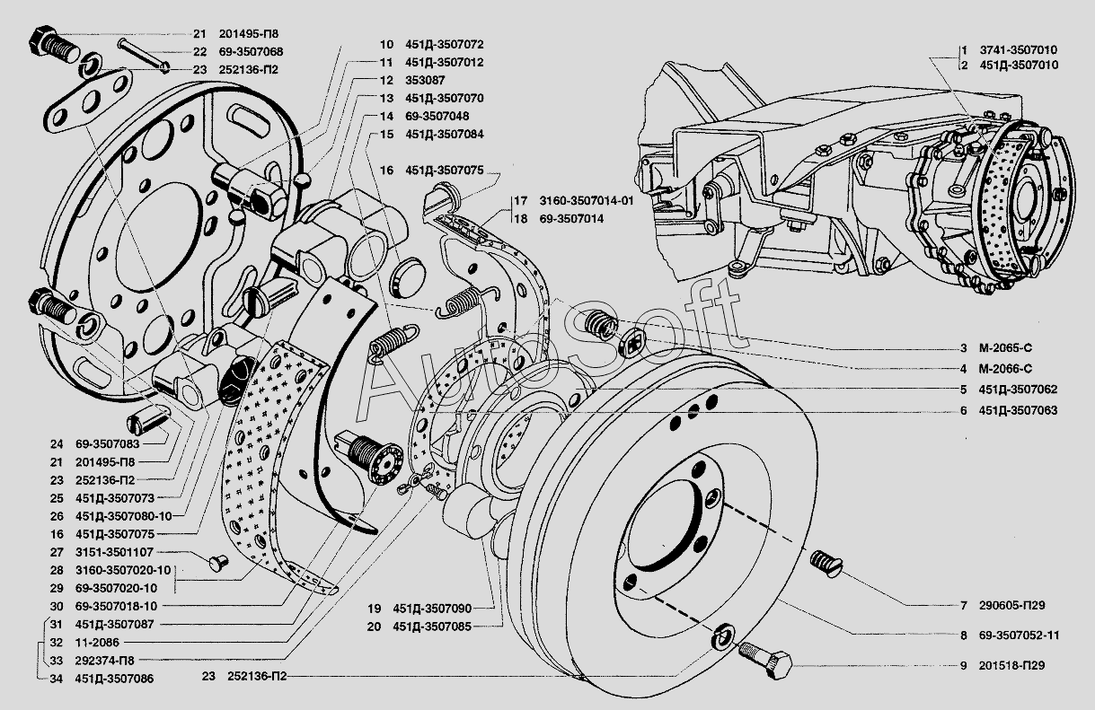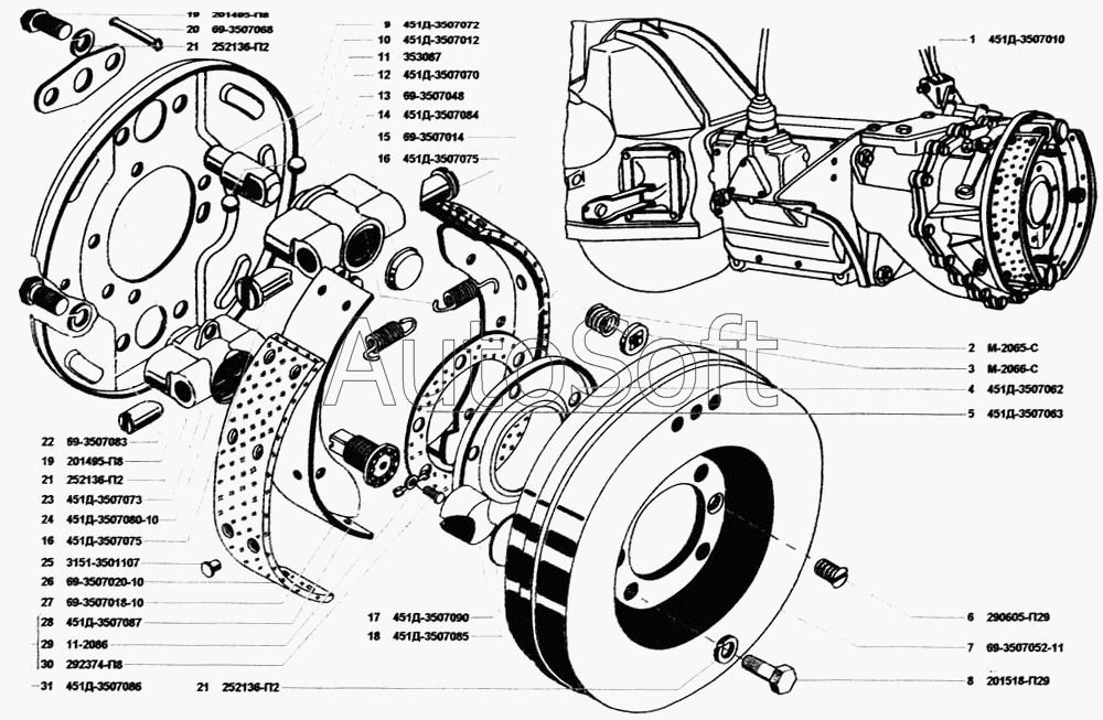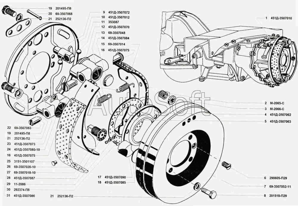 | Наименование: | Тормоз 451Д-3507010 стояночный в сборе |