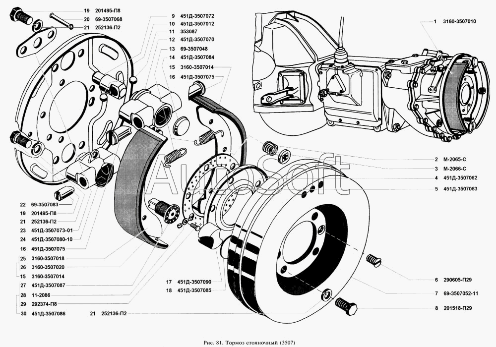 ГАЗ | ГАЗ-3307 (2000) | 52-3507010 | Тормоз стояночный в сборе | Тормоз стояночный | |