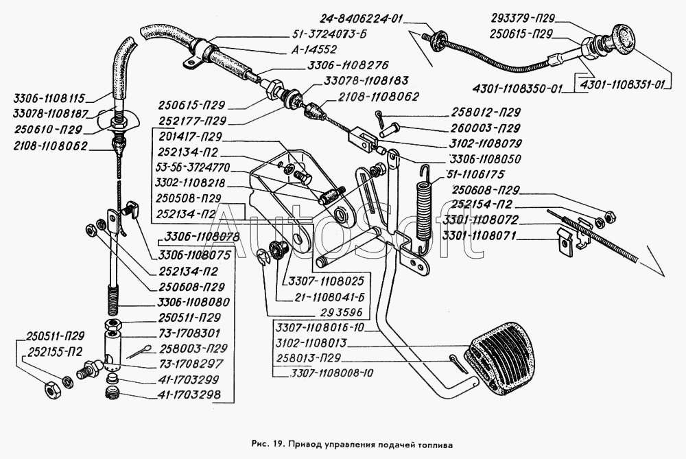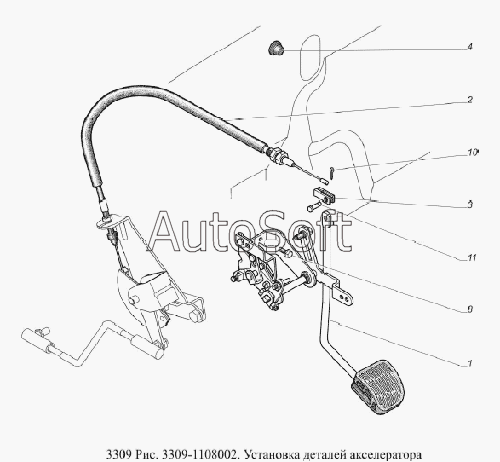 ГАЗ | ГАЗ-33081 (2008) | 33081-1108050 | Тяга акселератора с оболочкой | 3309-1108002. Установка деталей акселератора |