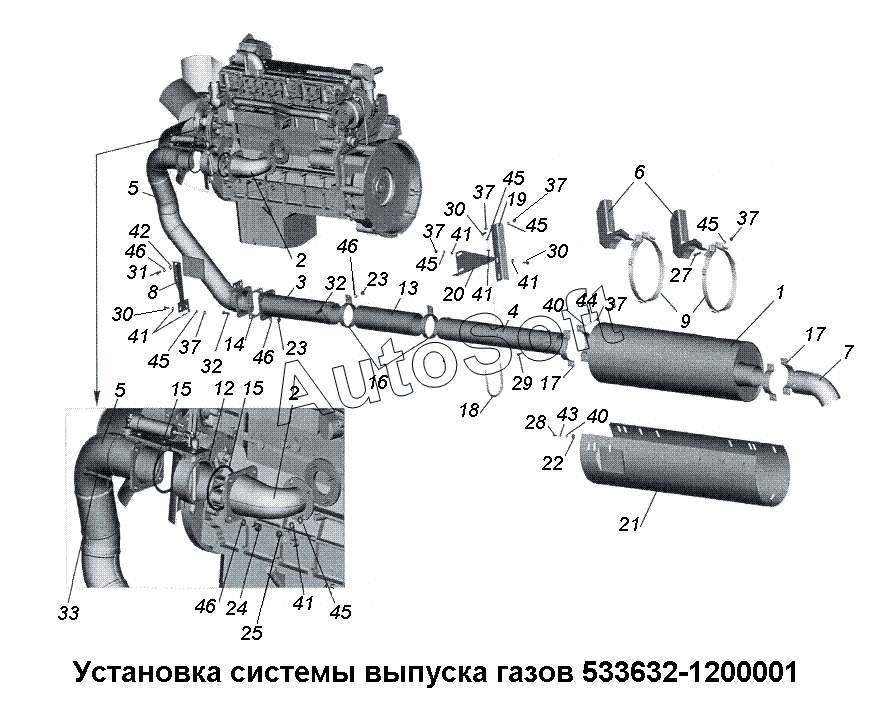 | МАЗ | МАЗ-533731 (2012) | 555132-1203033 | Труба приемная | Установка системы выпуска газов 630333-1200001 |