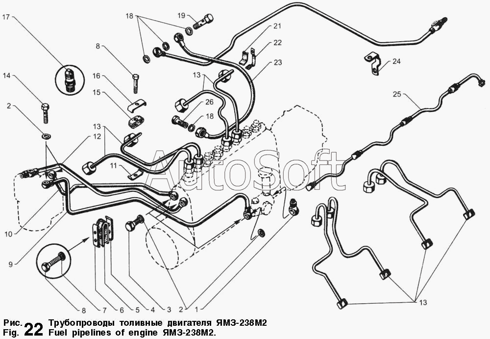 | ЯМЗ | ЯМЗ-236 М2 и 238 М2 | 238-1104308 | Трубка топливная насоса высокого давления в сборе | Трубопроводы топливные двигателя ЯМЗ-238М2 |
