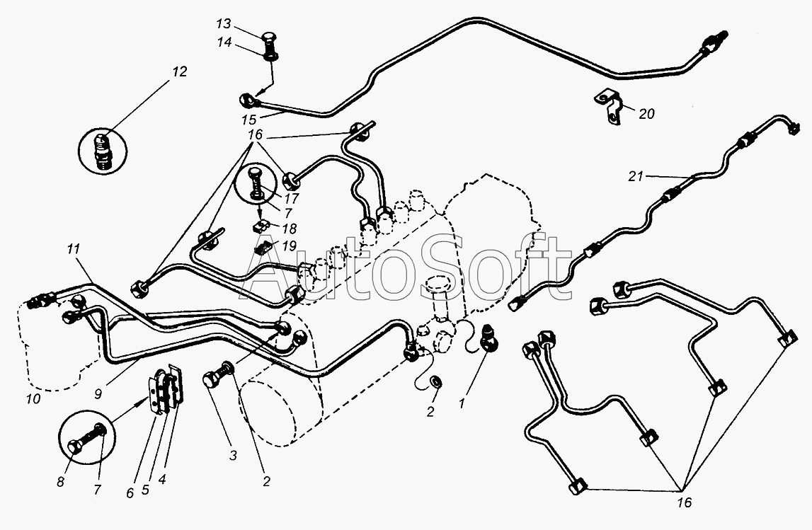 | ЯМЗ | ЯМЗ-236 М2 и 238 М2 | 236-1104308-В | Трубка топливного насоса высокого давления в сборе | Трубопроводы топливные двигателя ЯМЗ-236М2 | |