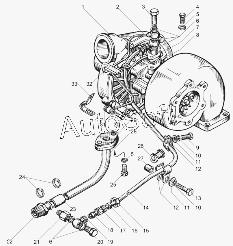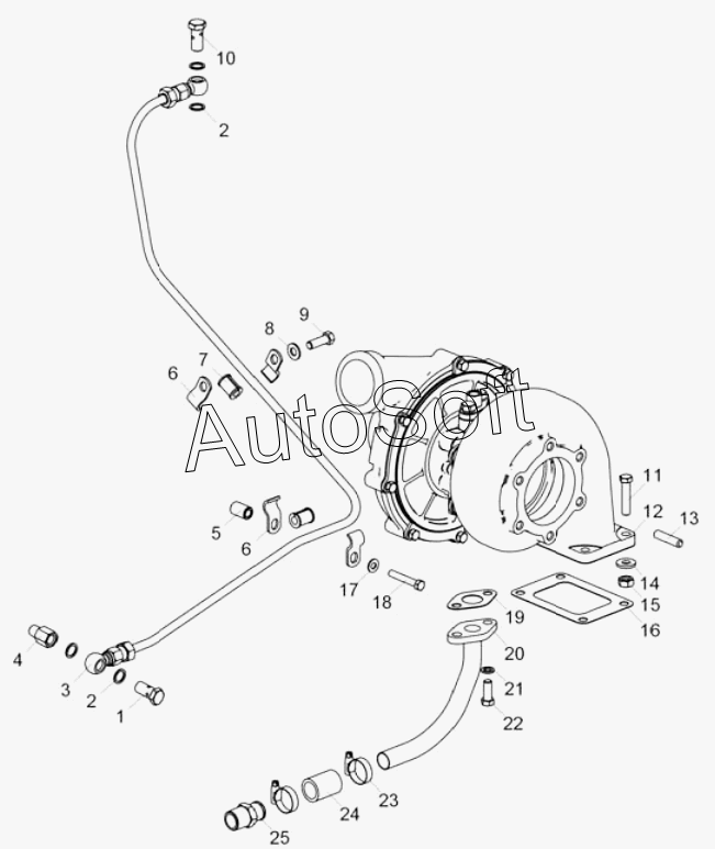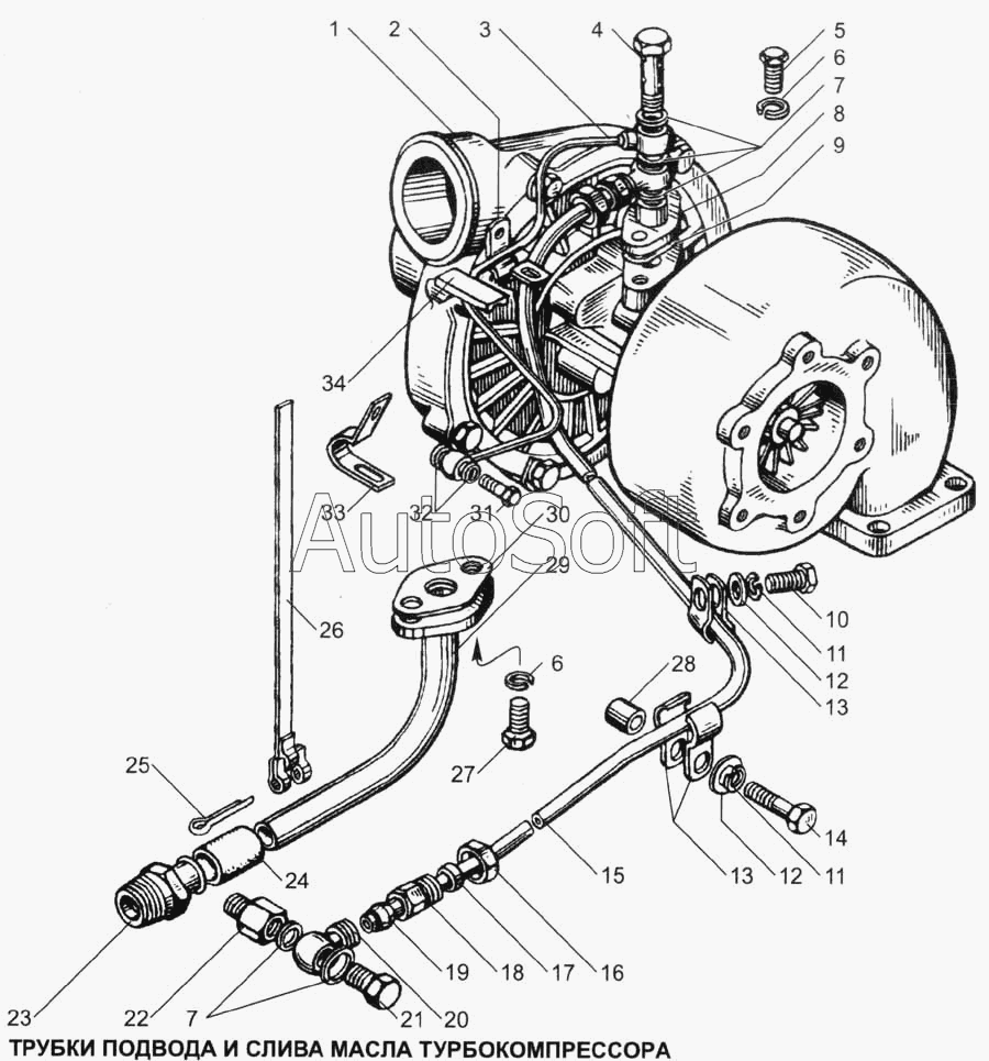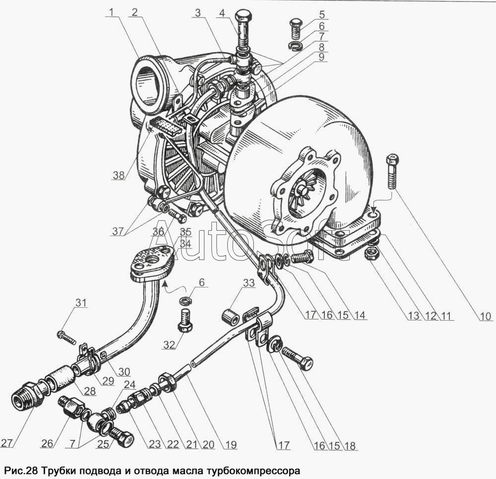 МАЗ | МАЗ-54328 | 238Ф-1118220 | Трубка подвода масла к турбокомпрессору в сборе | Форсунка | |