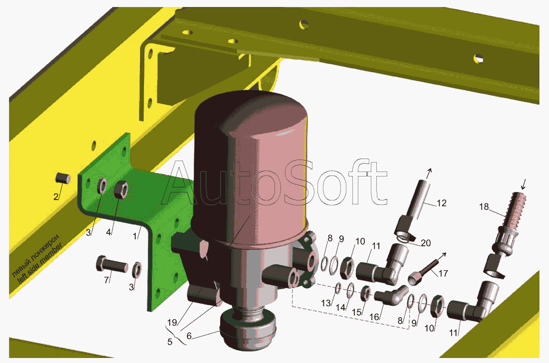 | МАЗ | МАЗ-437041 (Зубренок) (2010) | 4370-3506142-010 | Трубка со шлангом | Крепление осушителя воздуха 4370-3536004 |