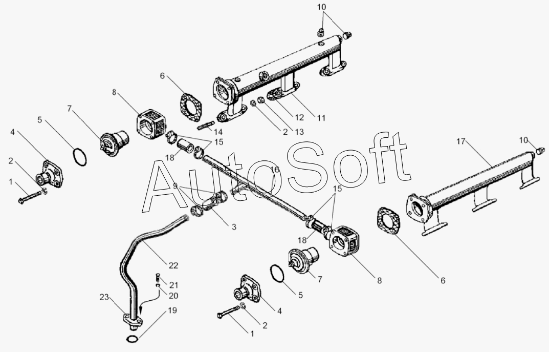 Трубка 7511 7511-1306080 перепускная водяного охлаждения, производство трубки Автодизель (ЯМЗ). Аналог трубки 6581.1306080-10
