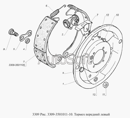 | Тормозной механизм в сборе 3302-3501137 перед.лев. ЗавГар | |