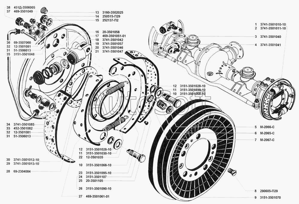 | УАЗ | УАЗ-3151 (1993) | 469-3501041-01 | Цилиндр колёсный левый в сборе | Тормоза рабочие передние и тормозные барабаны | |