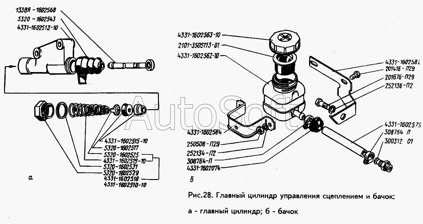 | ЗИЛ | ЗИЛ-433100 | 4331-1602510-10 | Главный цилиндр управления сцеплением в сборе | Главный цилиндр управления сцеплением и бачок |