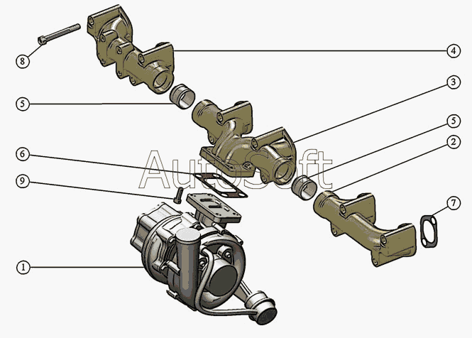 ММЗ | Д-260.5Е3 / Д-260.12Е3 (2008) | К27-523-02 | ТУРБОКОМПРЕССОР | Установка турбокомпрессора |