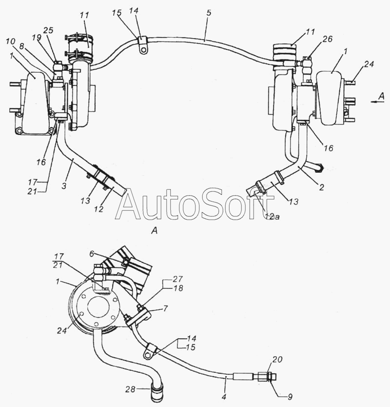 ЗИЛ | ЗИЛ-3250 (2000) | 245-1008182-А | Труба выпускная (только с ТКР 6) | Воздухоподводящий тракт и маслопроводы турбокомпрессора |