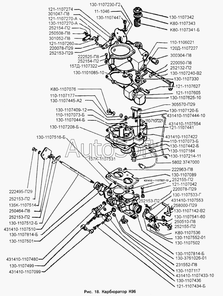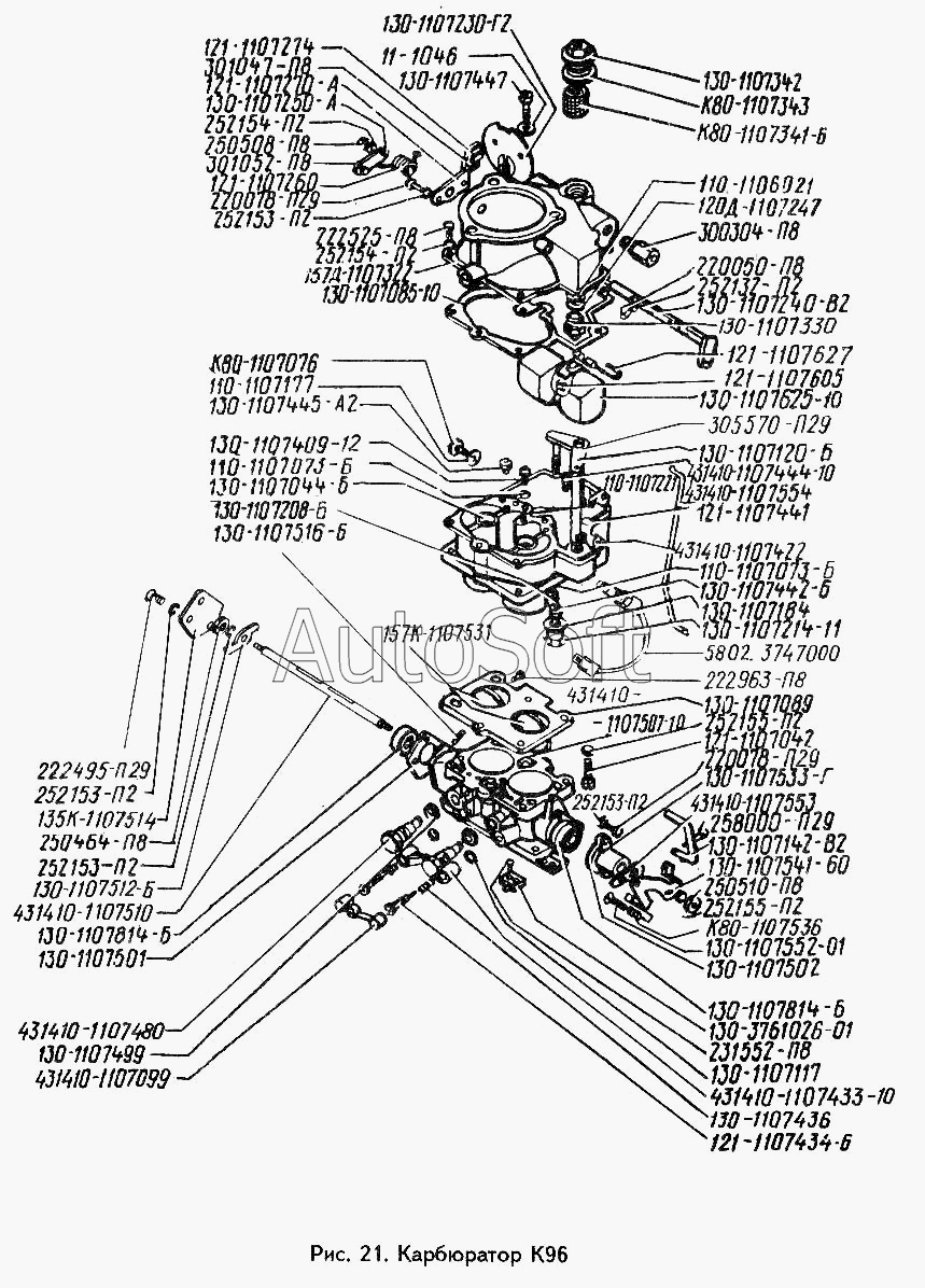 | ЗИЛ | ЗИЛ-433110 (2003) | 130-1107142-В2 | Тяга ускорительного насоса | Карбюратор К96 |