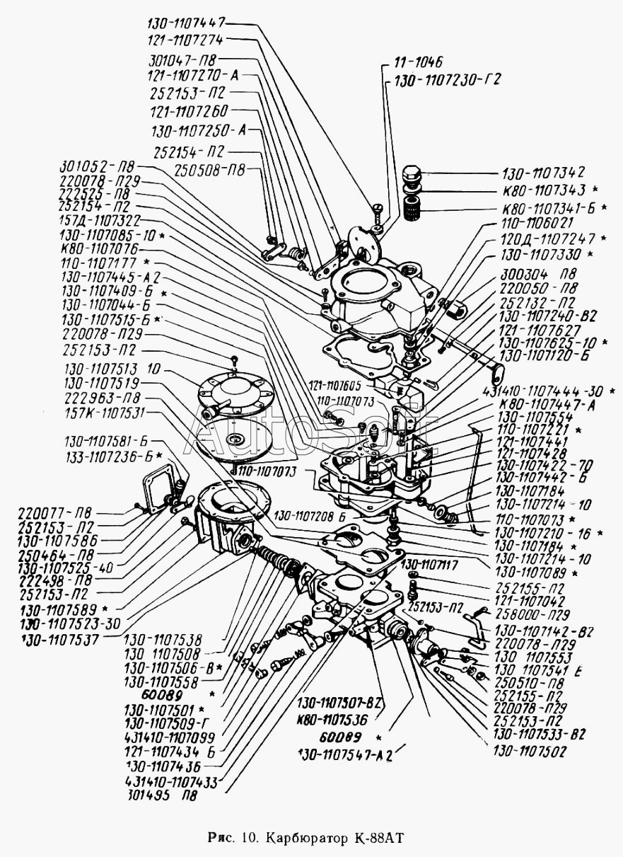 | ЗИЛ | ЗИЛ-494560 (1995) | 130-1107142-В2 | Тяга ускорительного насоса | Карбюратор К88АТ |