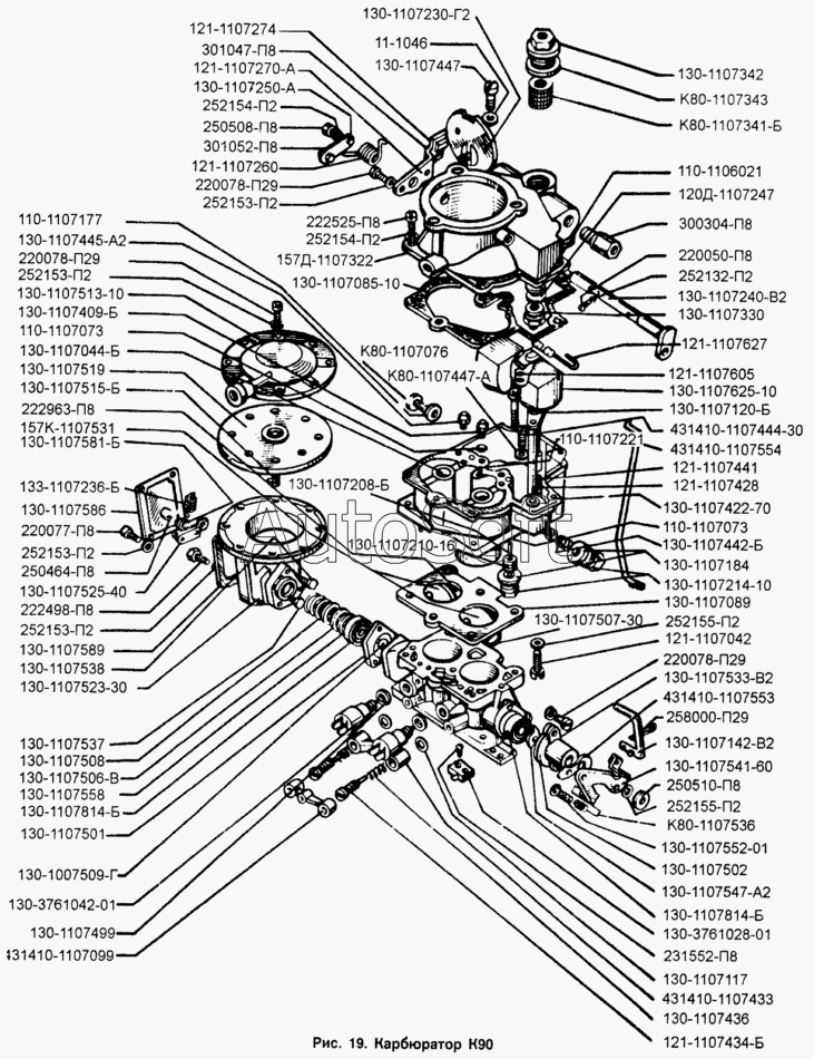 | ЗИЛ | ЗИЛ-433360 (1995) | 130-1107142-В2 | Тяга ускорительного насоса | Карбюратор К90 |