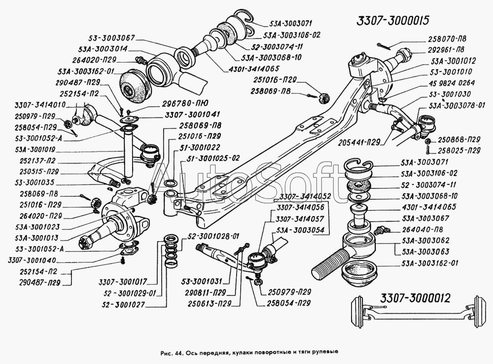 | ГАЗ | ГАЗ-3309 | 3307-3414052 | Тяга рулевая поперечная в сборе | Ось передняя, кулаки поворотные и тяги рулевые |