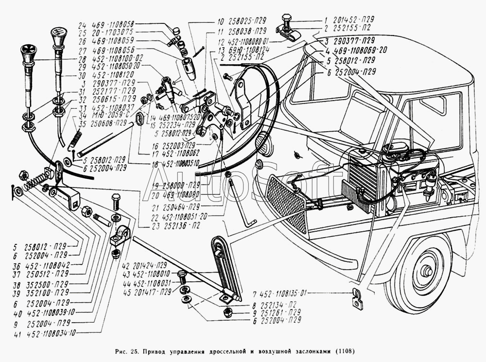 | УАЗ | УАЗ-3962 | 452-1108100-02 | Тяга воздушной заслонки | Привод управления дроссельной и воздушной заслонками | |