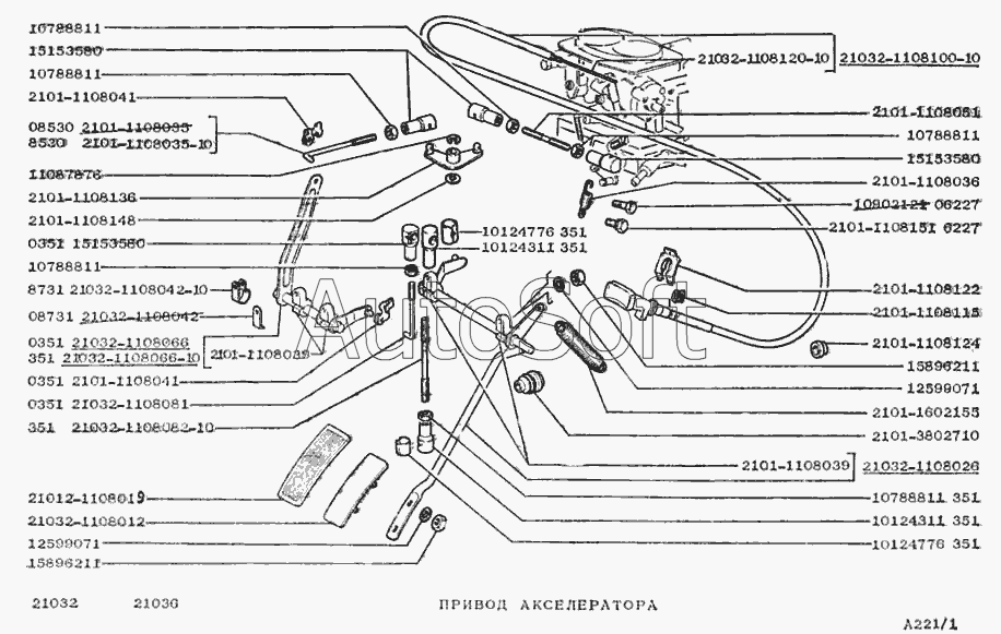 | ВАЗ | ВАЗ-2101 (1982) | 21032-1108100-10 | Трос с оболочкой | Привод акселератора |