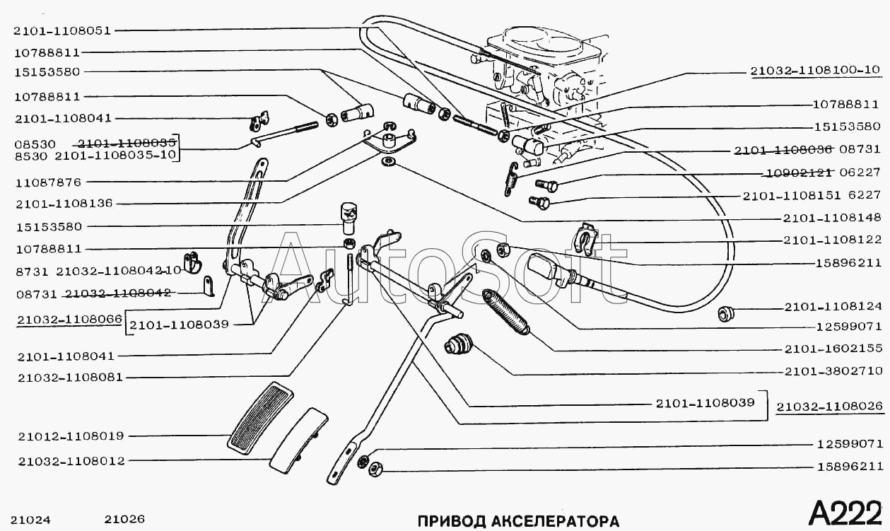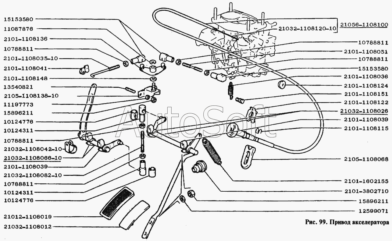 | ВАЗ | ВАЗ-2102 (1982) | 2101-1108100 | Трос с оболочкой | Привод акселератора |