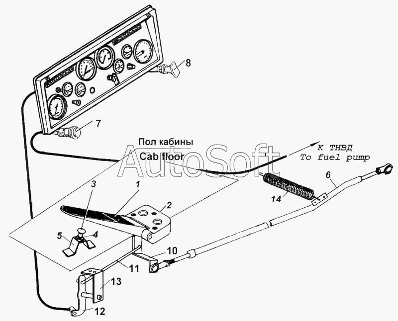 | Камский автозавод | 5297 (2004) | 5320-1108120-12 | Тяга ручного управления подачей топлива | Установка пневмоцилиндра и тяг управления ТНВД | |