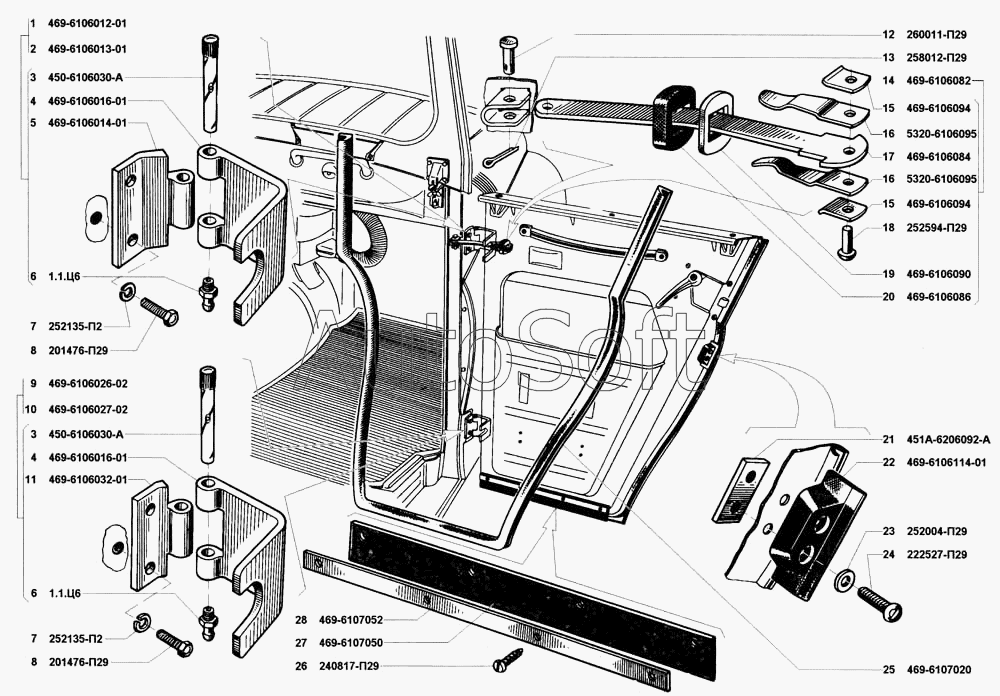 | УАЗ | УАЗ-3151 (1993) | 469-6107020 | Уплотнитель двери наружный | Навеска передней и задней дверей, уплотнения передней и задней дверей | |