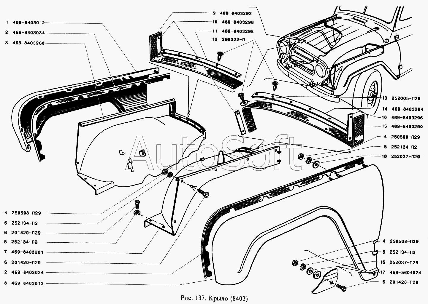УАЗ | УАЗ-3151 (1993) | 469-8403034 | Прокладка переднего крыла | Крыло |
