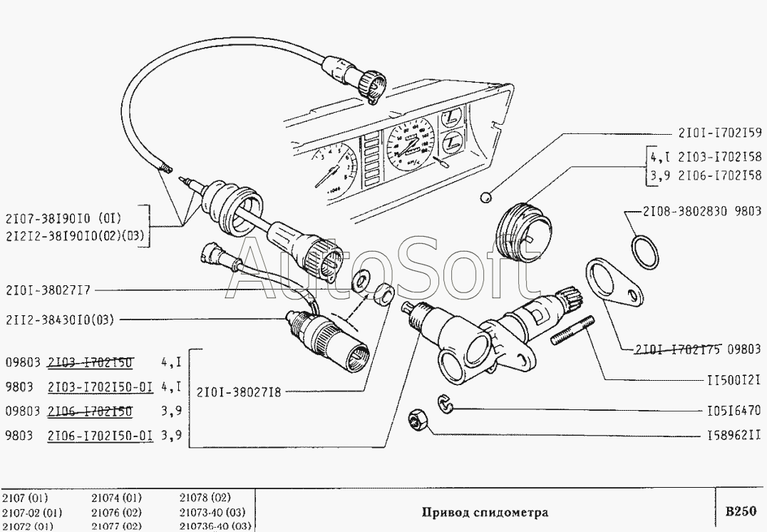 | ВАЗ | ВАЗ-2109 (1991) | 2107-3819010 | Вал привода спидометра | Привод спидометра | |