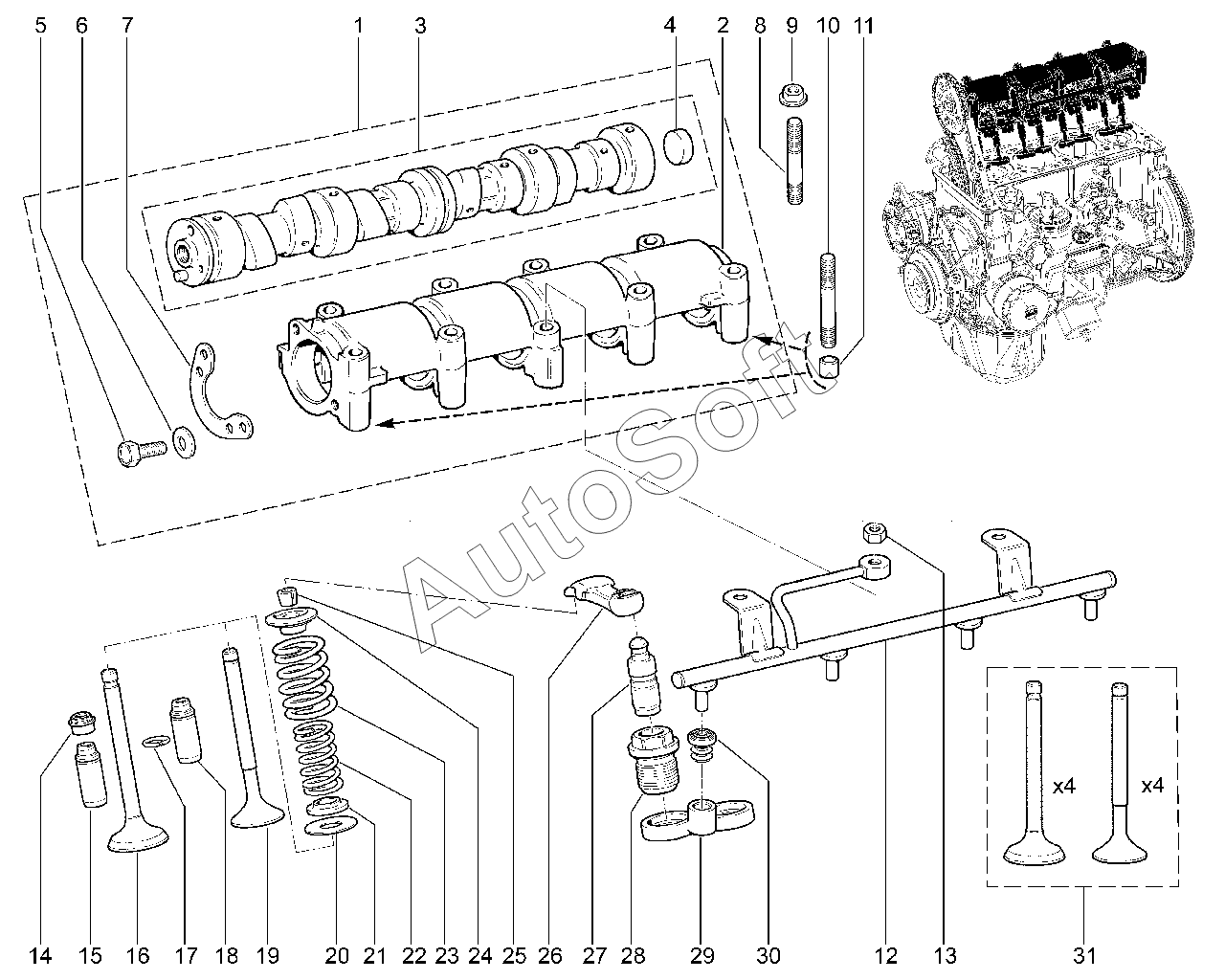 | ВАЗ | ВАЗ-2123 (2000) | 21214-1006008 | Вал распределительный с корпусом подшипников | Механизм газораспределительный |