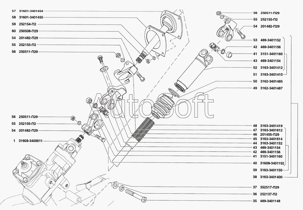 | УАЗ | УАЗ Patriot (2005) | 3163-3401400 | Вал карданный рулевого управления | Управление рулевое |