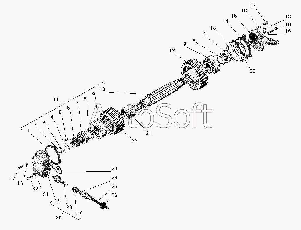 Вал 72-1802063 раздаточной коробки БЗТДиА производства БЗТДиА (БЗТДиА), Код для заказа: 00-ГР036026