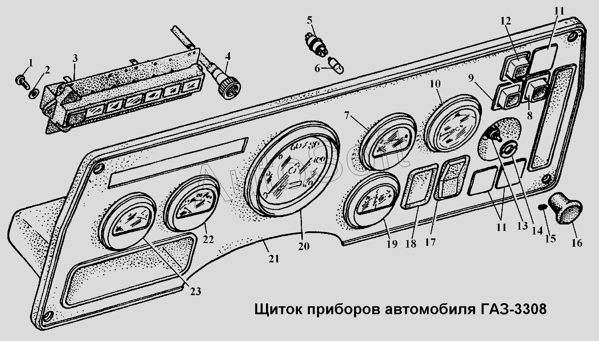 ГАЗ | ГАЗ-3308 (2002) | ГВ20Д-01 | Вал гибкий спидометра в сборе | Щиток приборов автомобиля ГАЗ-3308 |