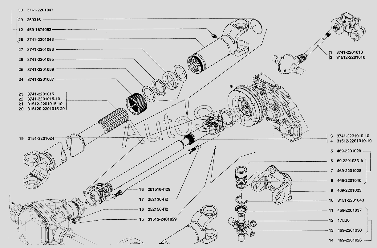 | УАЗ | УАЗ-37419 (2009) | 31512-2201010 | Вал карданный заднего моста в сборе | Вал карданный заднего моста |