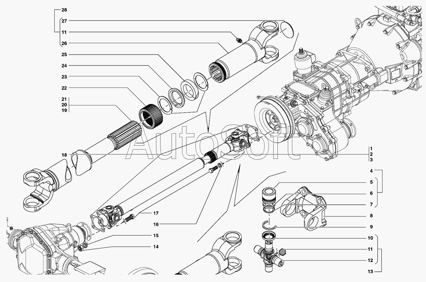 | УАЗ | УАЗ-31512 (2002) | 31512-2201010-20 | Вал карданный заднего моста в сборе | Вал карданный заднего моста |