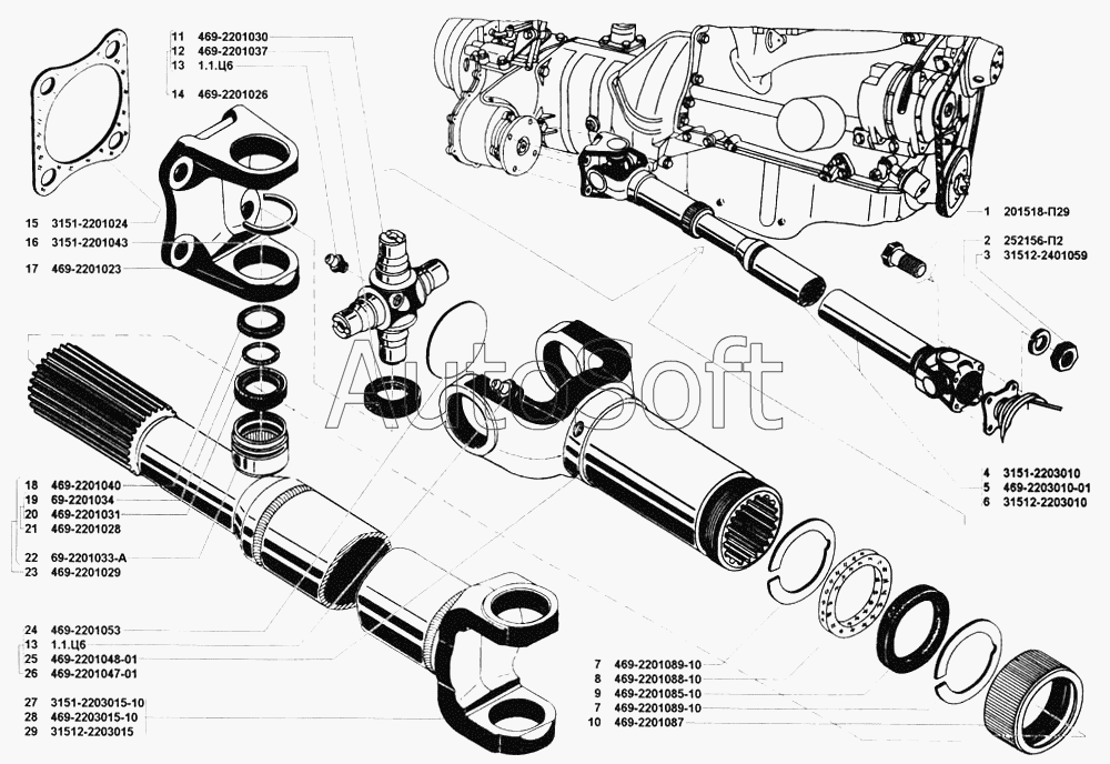 УАЗ | УАЗ-31512 (2002) | 469-2203010-01 | Вал карданный переднего моста в сборе | Вал карданный переднего моста |