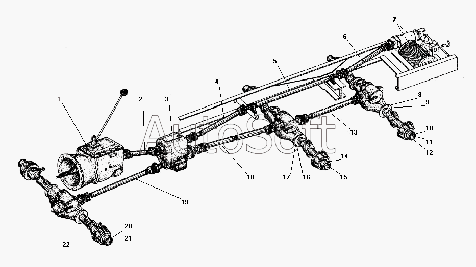 | УралАЗ | УРАЛ-375 | 375-2202010-В3 | Вал карданный промежуточный с шарнирами в сборе | Схема расположения карданных валов автомобиля Урал-377 (Рис. 51) | |