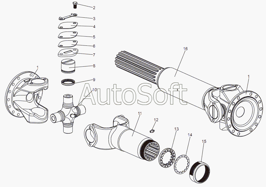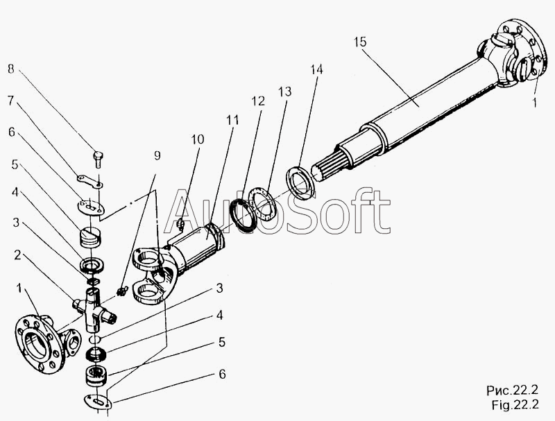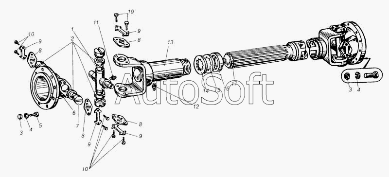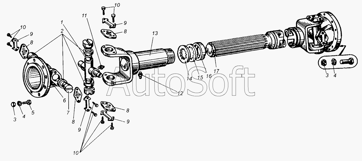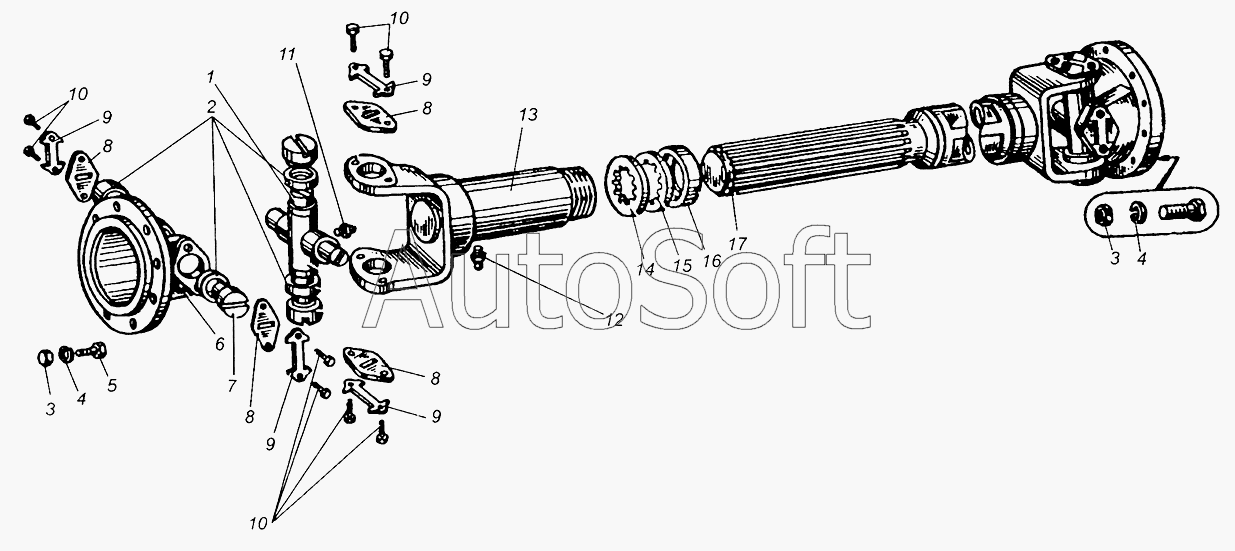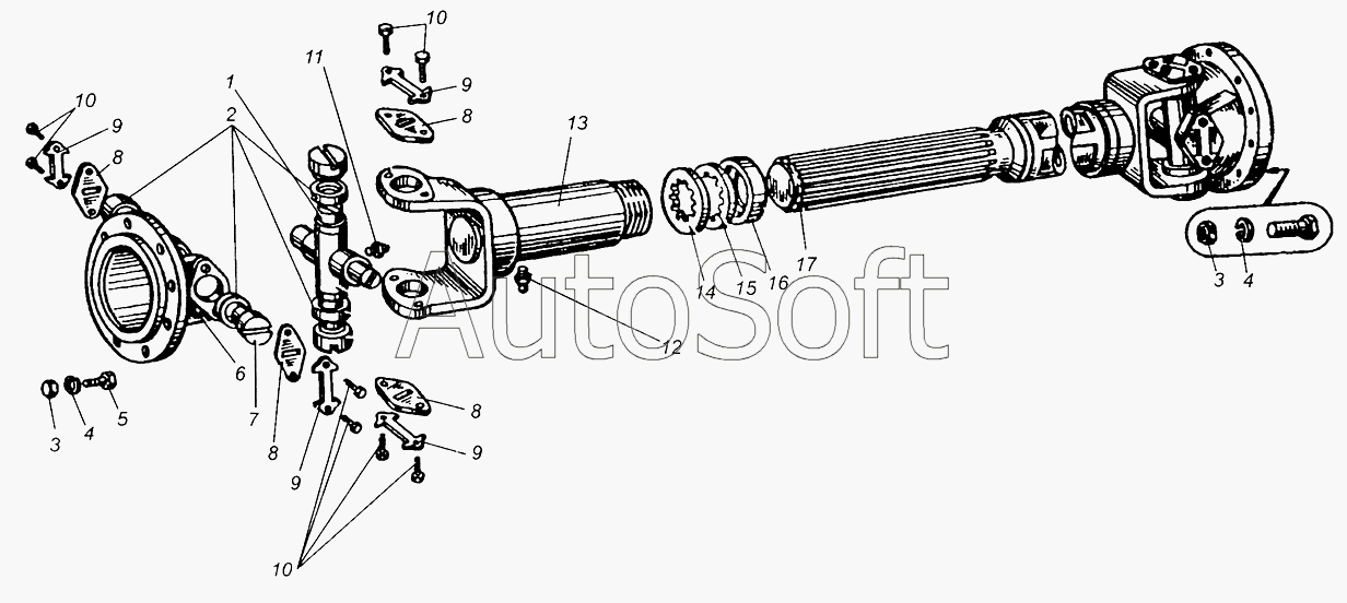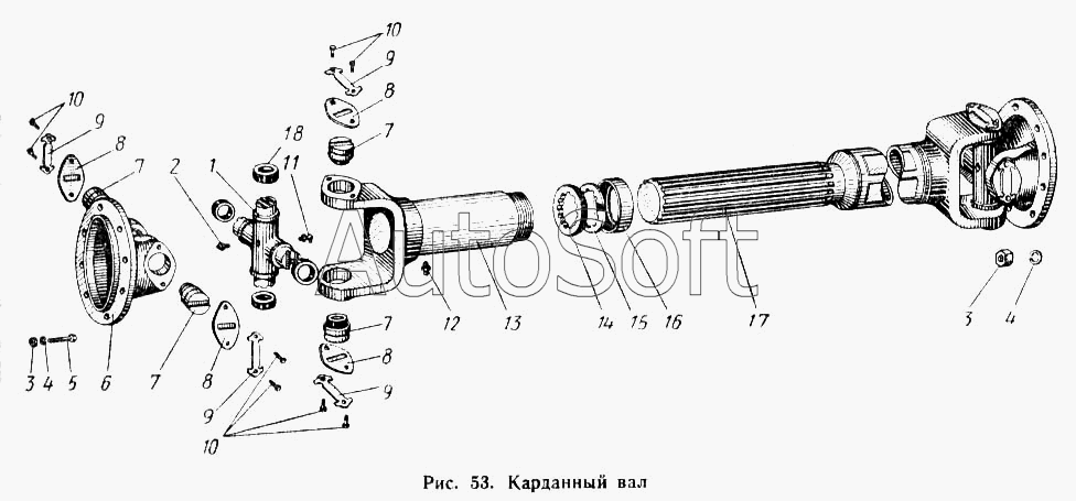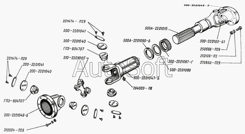 Вал карданный 500А-2201010-03 производства РБ (РБ), Код для заказа: 187